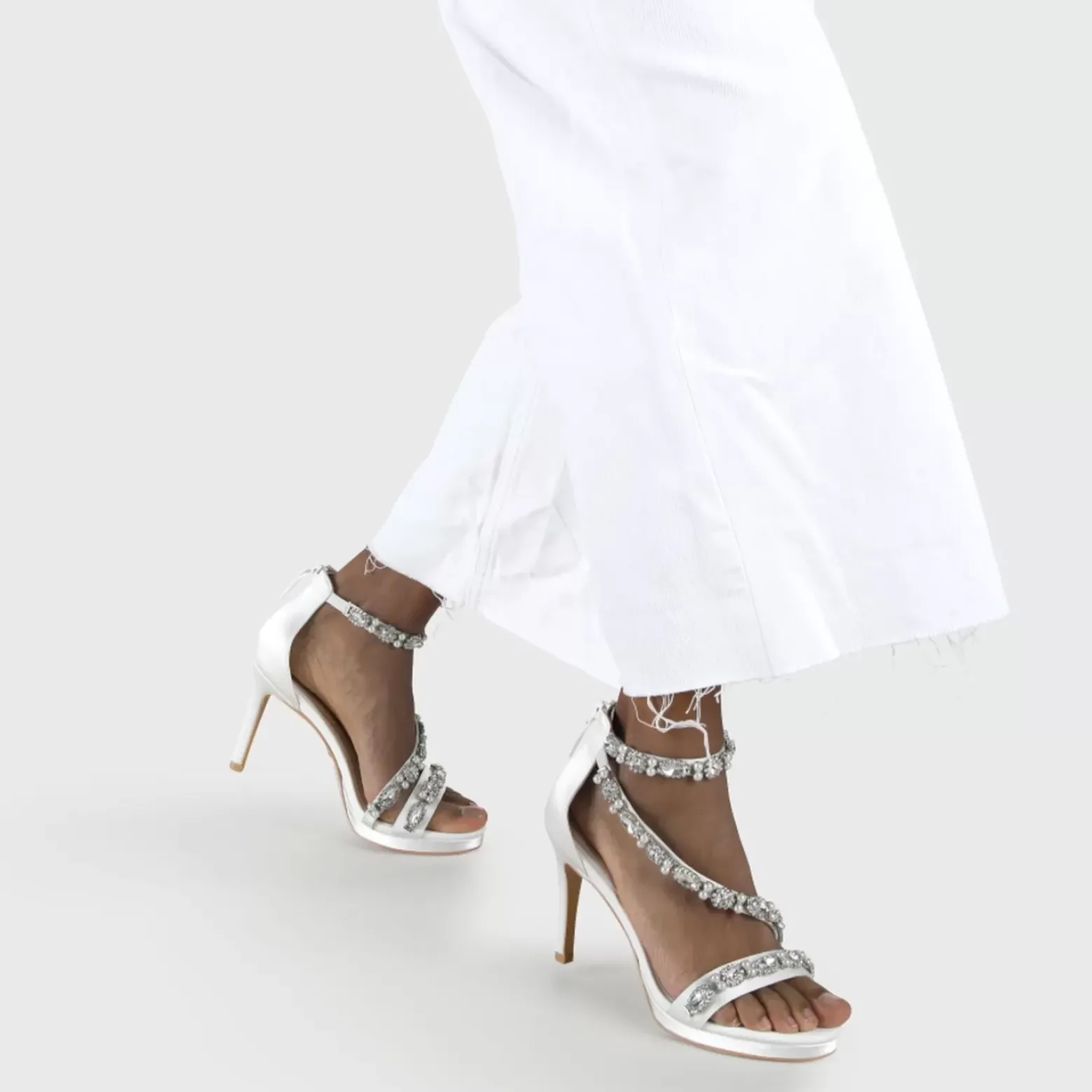 Avec Les Sandales Anna Aux Pieds, Vos Prochains Pas Seront Assurement Styles. Grace Au Satin Coloris Ivoire Et Les Lanieres Serties De Perles Et De Cristaux, Vous Etes Extremement Elegante, Tandis Que L’Agreable Hauteur De Talon Dotee D’Une Petite Plateforme Vous Permet De Danser Toute La Nuit. Caracteristiques : Satin Ivoire Lanieres Avec Perles Et Cristaux Zone Du Talon Fermee Avec Fermeture Eclair Talon Aiguille De 9,5 Cm Semelle En Mousse A Memoire De Forme En Cuir