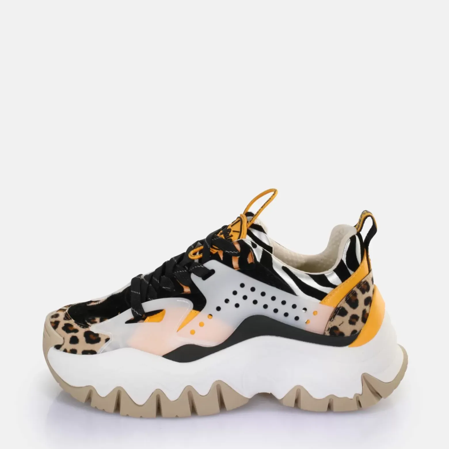 Ajoute Tout De Suite Ce Look Animal Dans Ton Armoire A Chaussures. L’Elegante Basket Basse Trail One Est Presentee Dans Un Design Sauvage Avec Differents Imprimes Animaliers. La Matiere Vegan Repose Sur Une Semelle Compensee Profilee Et Dispose D’Inserts En Mesh Respirant. Ultralegere Et Elegante, Cette Basket Devient Une It-Piece. La Semelle Memory Foam Amovible Garantit En Outre Un Confort Optimal. Cette Basket Sublimera Tous Les Looks Sportifs. Caracteristiques : Matiere Vegan Avec Motif Animal Sauvage Semelle Amovible Memory Foam Pour Un Confort Maximal Legere Respirante