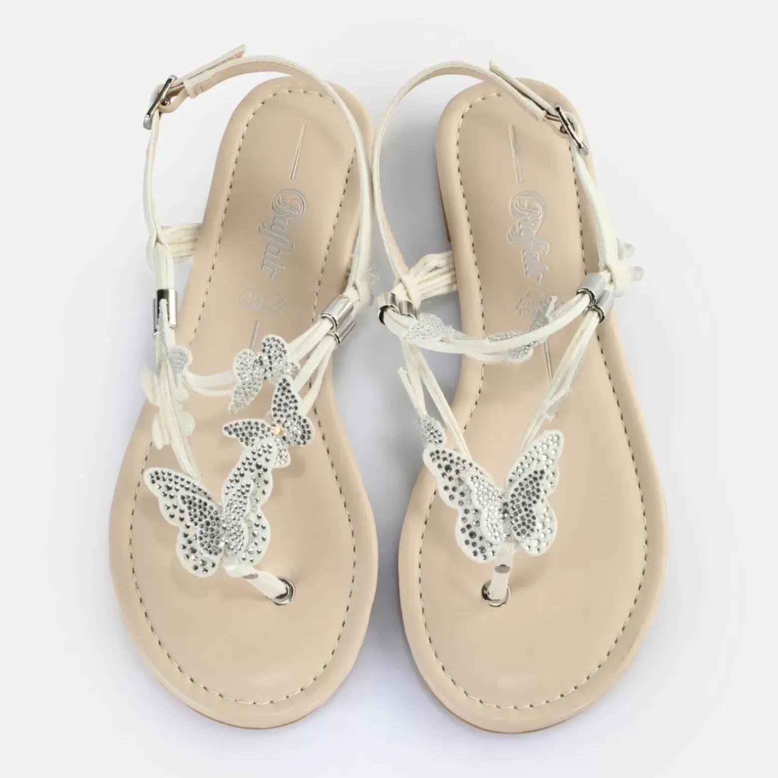 Sale BUFFALO Capri Sparkling Butterfly Sandales A Talon Veganes Perle Blanc