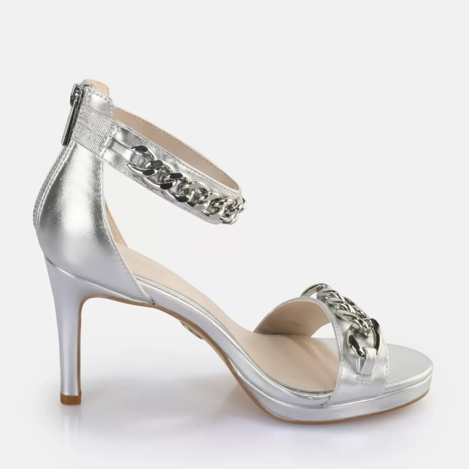La Sandale Vegan Serena Chain Est Une Veritable Icone De Style Dans Le Monde De La Chaussure. Avec Ses Multiples Details Elegants Et Un Design Exclusif, Cette Sandale A Talon Presente Une Silhouette Feminine. Le Talon Aiguille Fin, La Laniere Agreable Et Les Ornements Raffines Attirent Particulierement L’Attention. La Semelle Memory Foam Assure Une Demarche Souple. Caracteristiques : Aspect Cuir Nappa Vegant En Argent Scintillant Memory Foam Pour Le Confort Et La Douceur