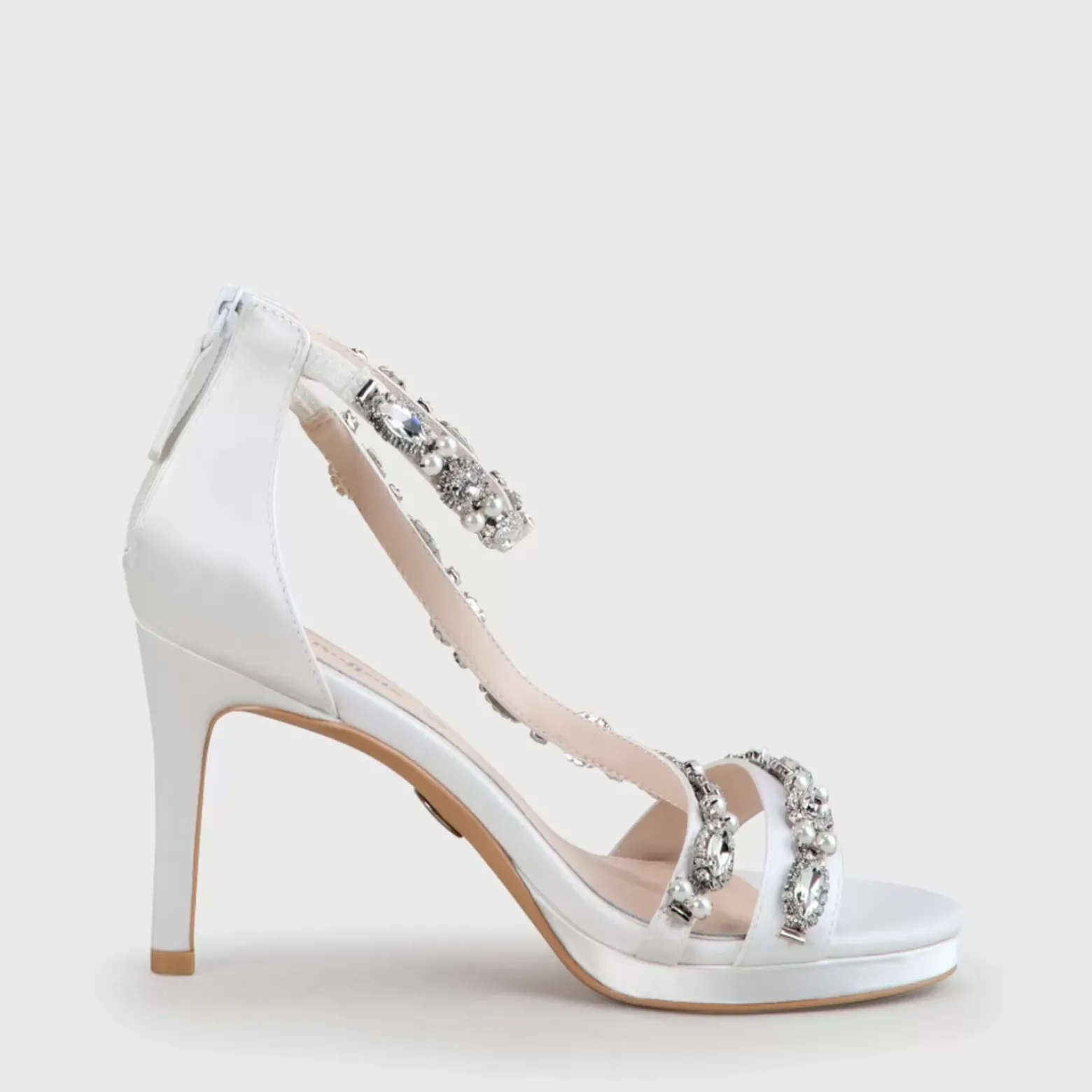 Avec Les Sandales Anna Aux Pieds, Vos Prochains Pas Seront Assurement Styles. Grace Au Satin Coloris Ivoire Et Les Lanieres Serties De Perles Et De Cristaux, Vous Etes Extremement Elegante, Tandis Que L’Agreable Hauteur De Talon Dotee D’Une Petite Plateforme Vous Permet De Danser Toute La Nuit. Caracteristiques : Satin Ivoire Lanieres Avec Perles Et Cristaux Zone Du Talon Fermee Avec Fermeture Eclair Talon Aiguille De 9,5 Cm Semelle En Mousse A Memoire De Forme En Cuir