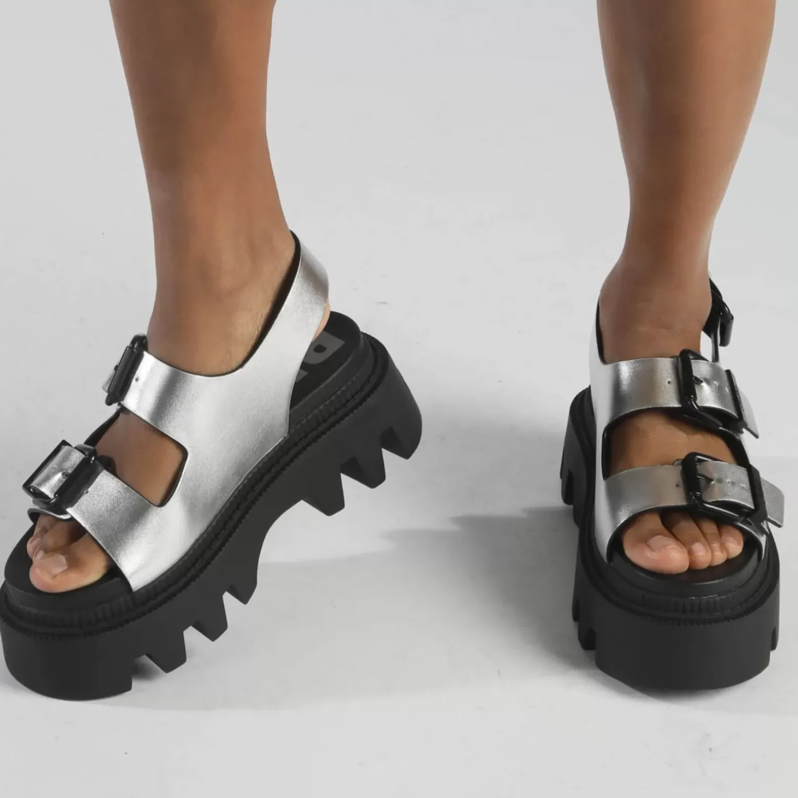 Best BUFFALO Flora On Sandales A Plateforme Veganese Argent