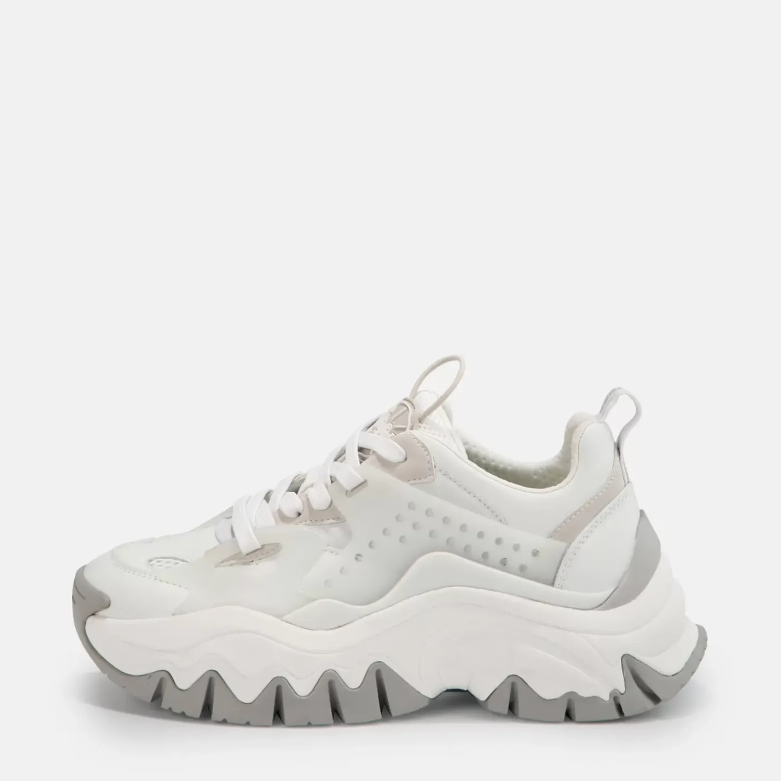 Les Trail One Blanc Brillant Sont Vraiment Un Modele De Baskets Emblematique. Les Thematiques Des Sports De Montagne Et De La Nature Se Refletent Dans Le Design A Plate-Forme De Ces Baskets. La Semelle En Caoutchouc Procure Une Traction Optimale, Meme Sur Les Surfaces Rocheuses, Tandis Que La Semelle Interieure En Mousse A Memoire De Forme Vous Permet De Mettre Un Pied Devant L’Autre Tout En Garantissant Un Confort Supplementaire.Caracteristiques :Modele Tres Respirantmatieres Veganessuperpositions En Differentes Matieressemelle Interieure Confortable En Mousse A Memoire De Forme