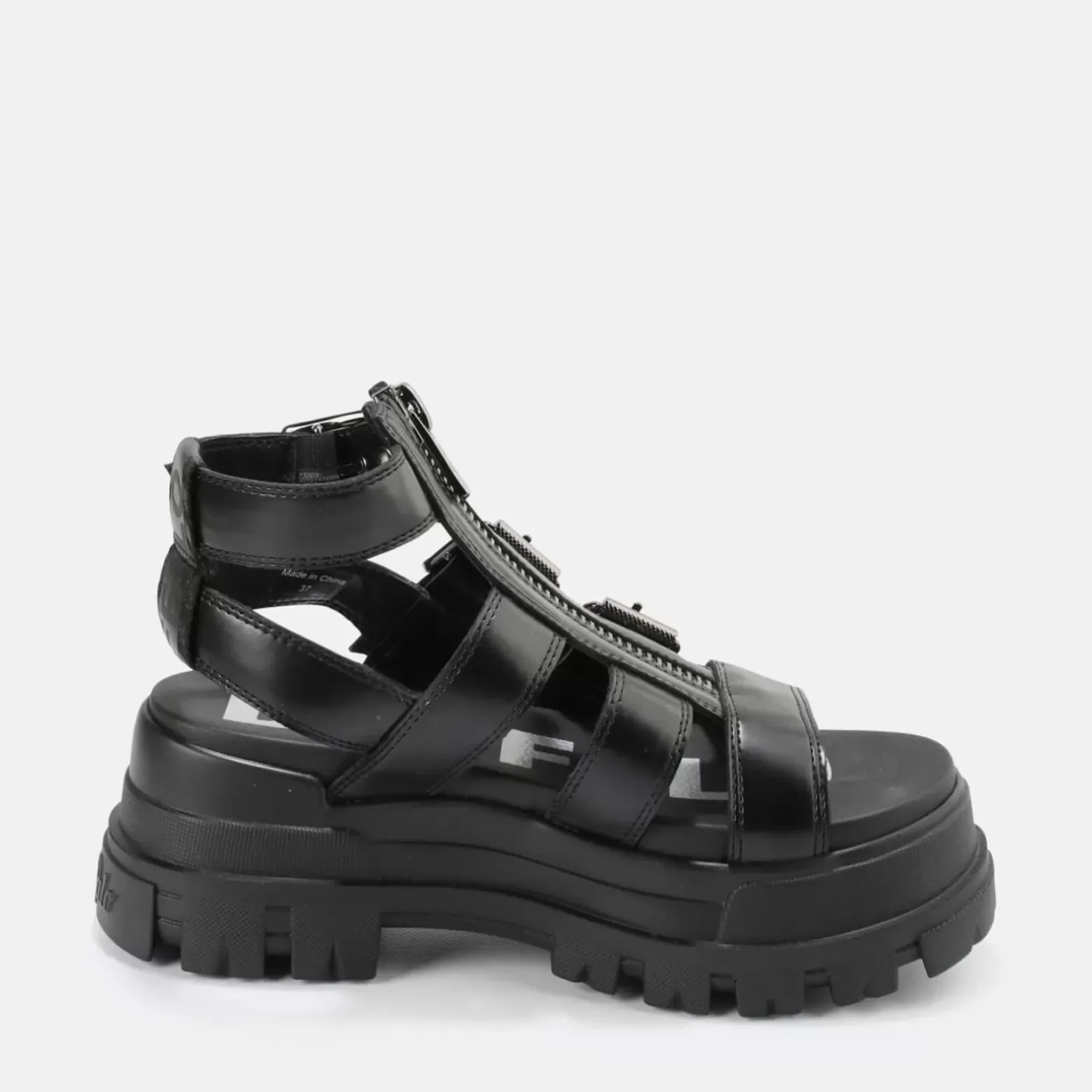 Cheap BUFFALO Gld Zip Sandales A Plateforme Veganes Noir