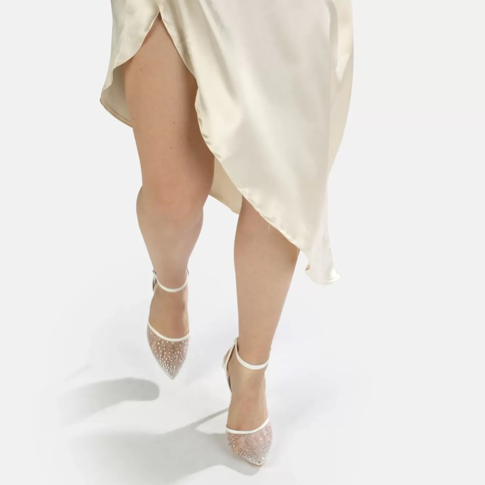 Avec Les Escarpins Romina Aux Pieds, Vous Allez Faire Sensation Lors De Votre Ceremonie De Mariage. Ce Magnifique Modele Est Concu D’Un Empiecement Mesh A L’Avant. De Beaux Strass Thermocolles Attirent Tous Les Regards Sur Vos Pieds Et Vous Font Briller. Le Talon Aiguille Ultra Haut Vous Met Parfaitement En Valeur. Caracteristiques : Tissu Mesh Coloris Ivoire Strass Thermocolles Talon Ouvert Avec Laniere De Cheville Talon Aiguille De 10,5 Cm Modele Confortable Avec Mousse A Memoire De Forme Avec Semelle Interieure En Cuir