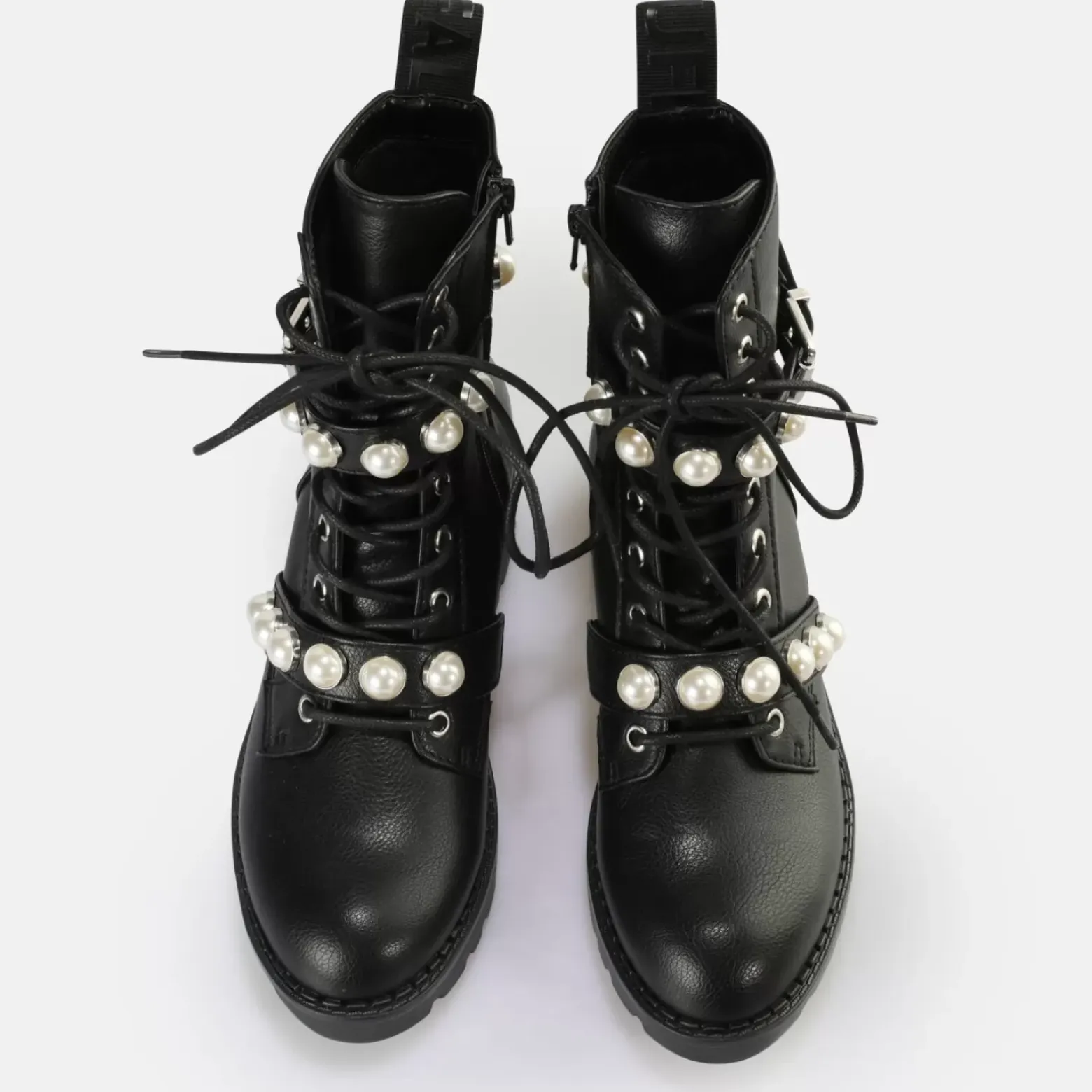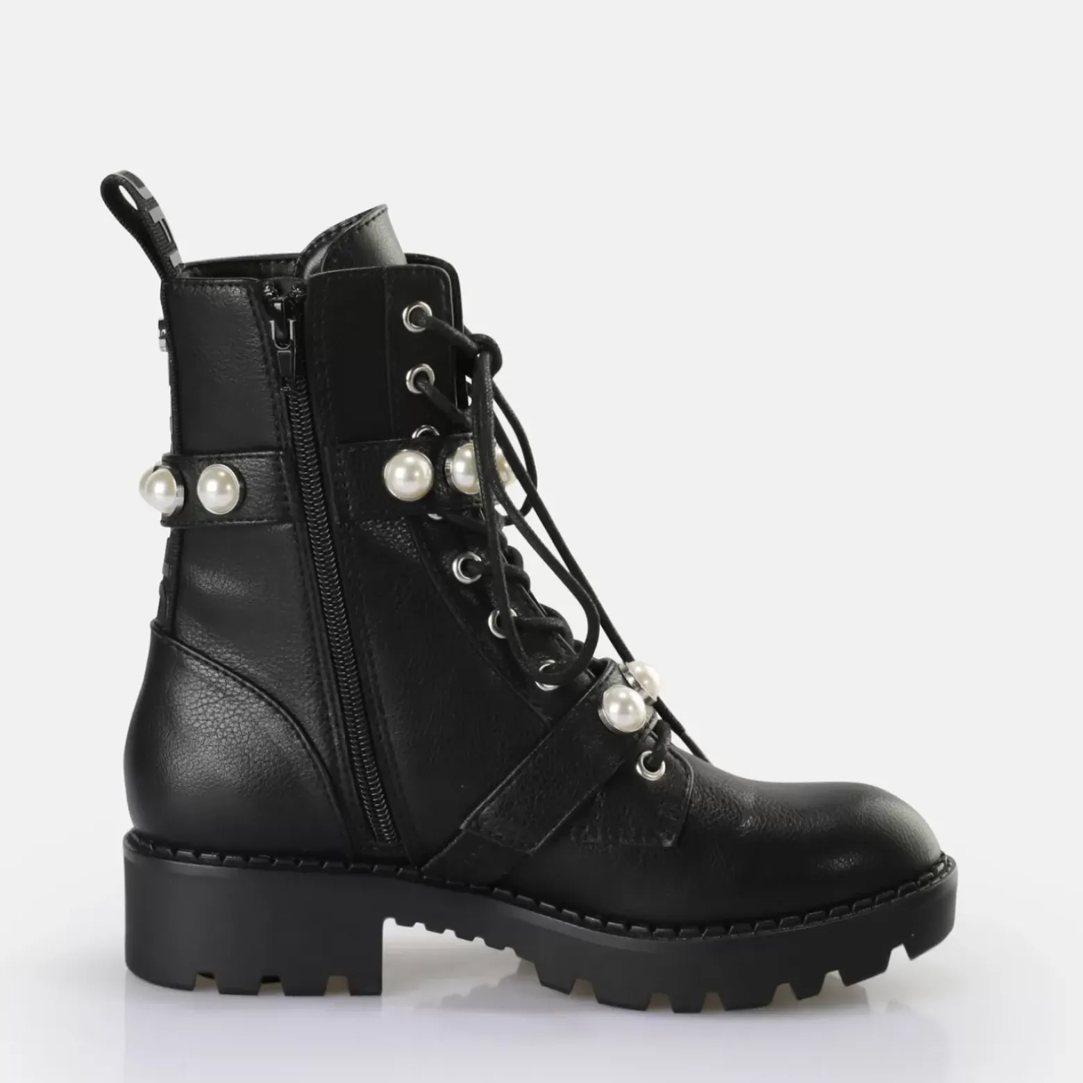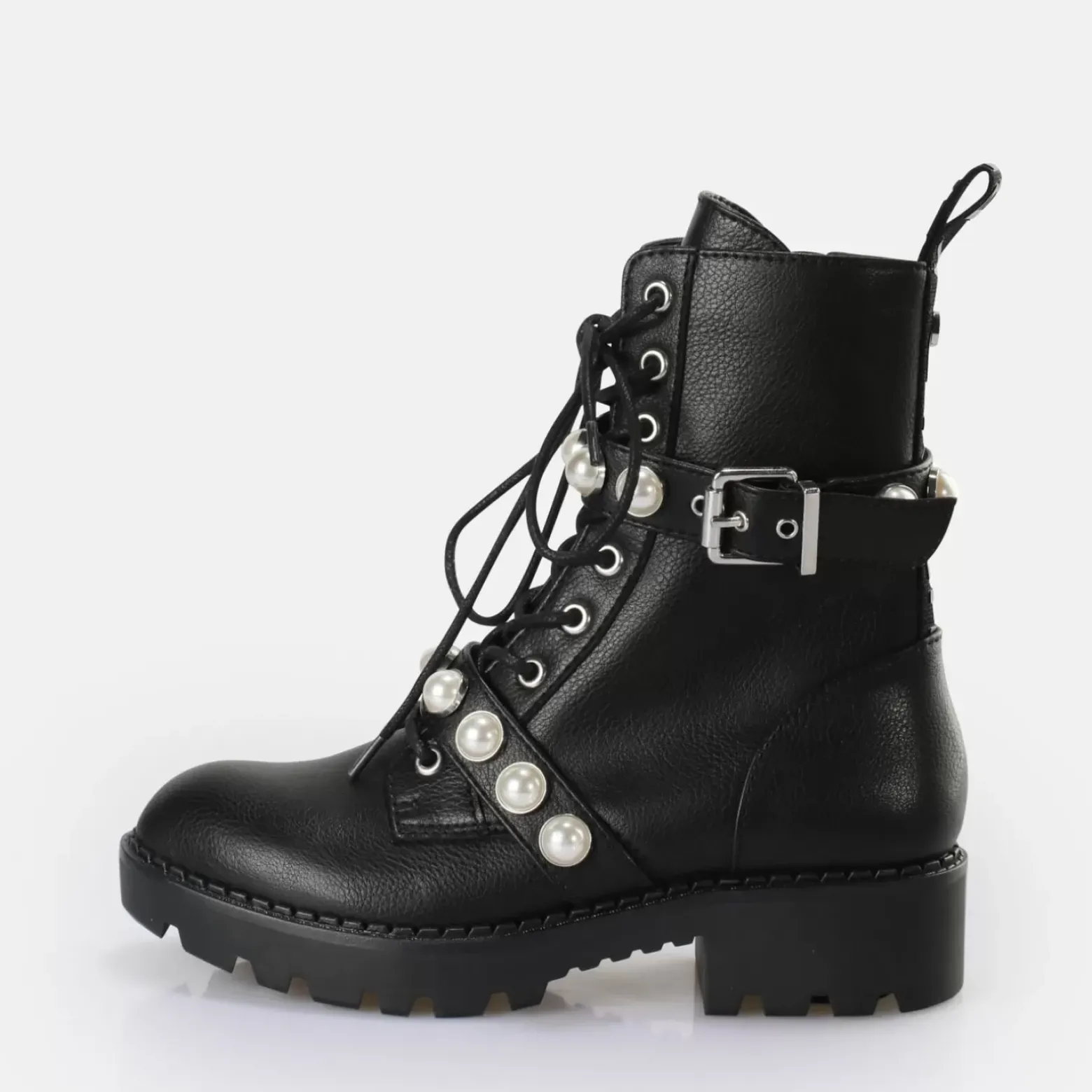 Un Incontournable D’Un Noir Mysterieux. Le Style Original De La Botte De Motard Et La Laniere Ornee De Perles Feminines Forment Un Contraste Captivant Qui Saute Immediatement Aux Yeux. Les Bottes A Lacets Avec Semelle Prononcee Et Talon Bas S’Accordent Aussi Bien Avec Une Petite Robe Noire Qu’Avec Un Pantalon En Cuir Rock. La Botte Wave Pearl Laceup Mid Est Pas Non Seulement Un Regal Pour Les Yeux, Mais Aussi Un Atout Confort Pour Tes Pieds. La Matiere Nappa Vegan Douce Est Doublee D’Un Rembourrage En Memory Foam Et Epouse Parfaitement Tes Pieds. Caracteristiques : Matieres Entierement Vegan Niveau De Confort Eleve Avec Un Interieur En Memory Foam