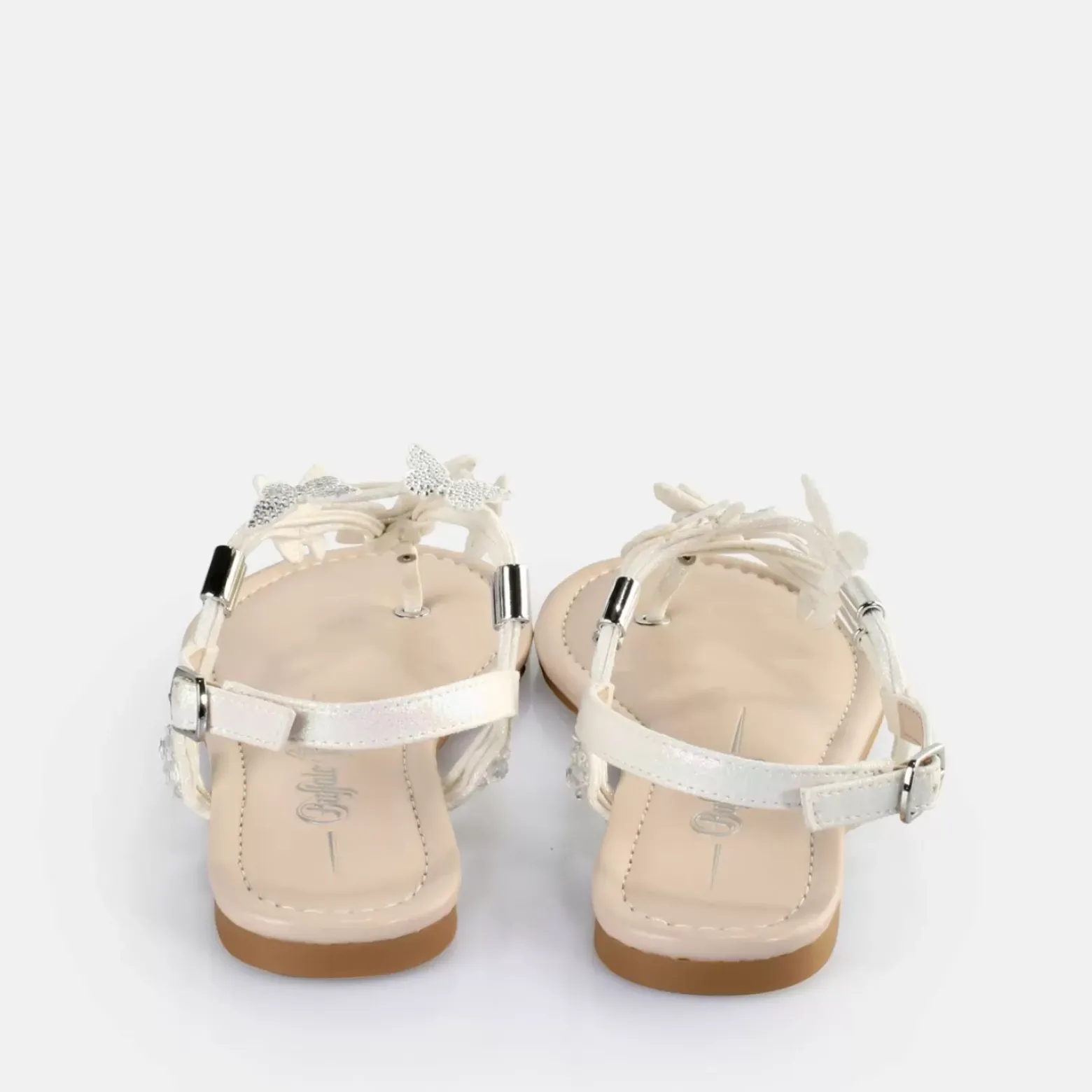 Sale BUFFALO Capri Sparkling Butterfly Sandales A Talon Veganes Perle Blanc