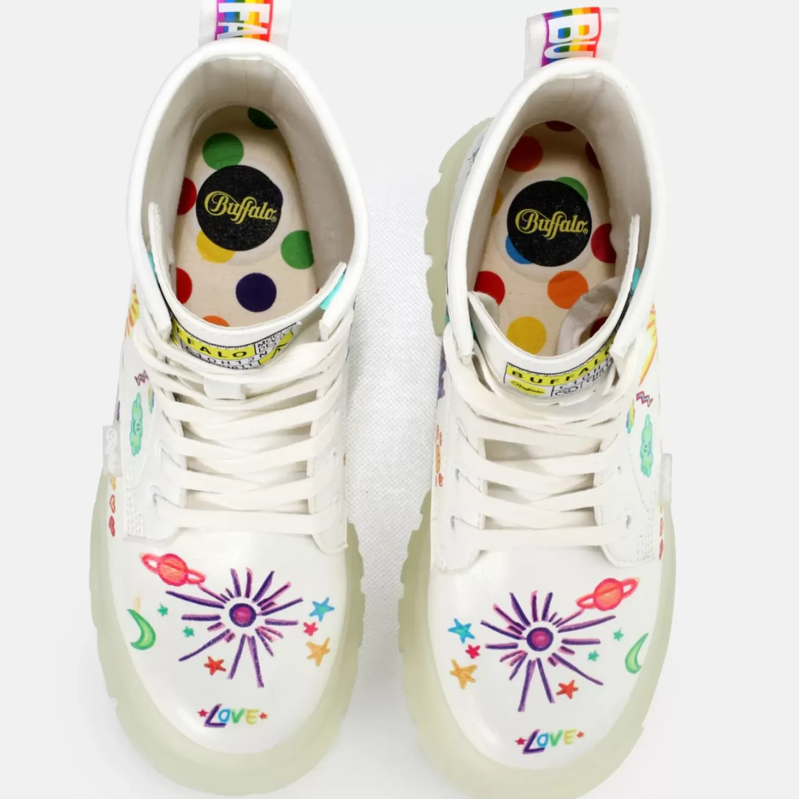 Make Love, Not War – Telle Est La Devise De La Botte Hauteur Cheville Aspha Rld. La Base Blanche De La Botte Attire Les Regards Avec Des Details Colores. Avec Cette Chaussure Vegane Emblematique, Tu Fais Bien Plus Qu’Une Simple Declaration De Mode. La Semelle Interieure Amovible Ainsi Que La Semelle Memory-Foam Te Garantissent Un Chaussant Agreable. Caracteristiques : Aspect Cuir Vegan Memory Foam Pour Un Ajustement Parfait Semelle Interieure Amovible