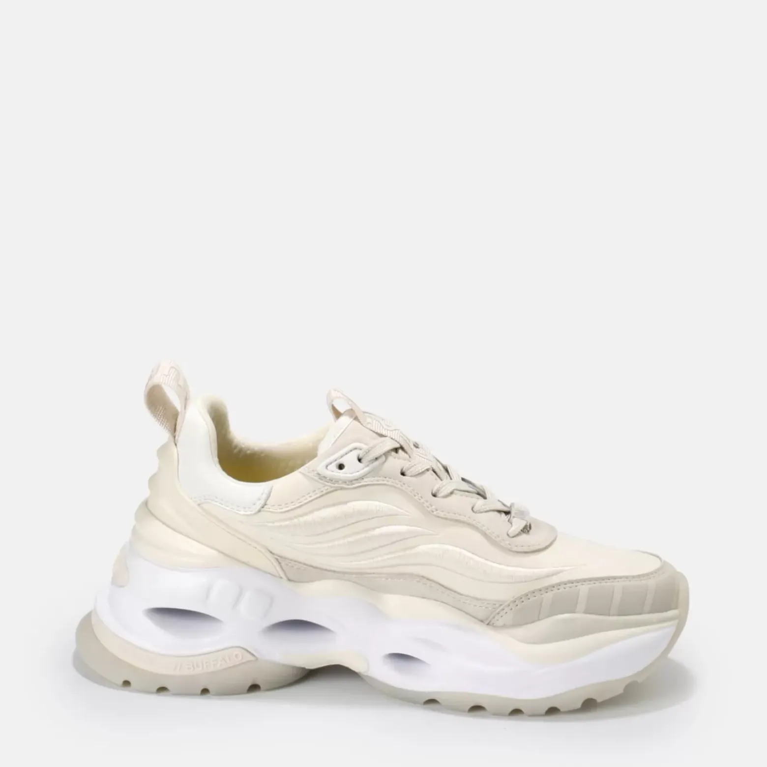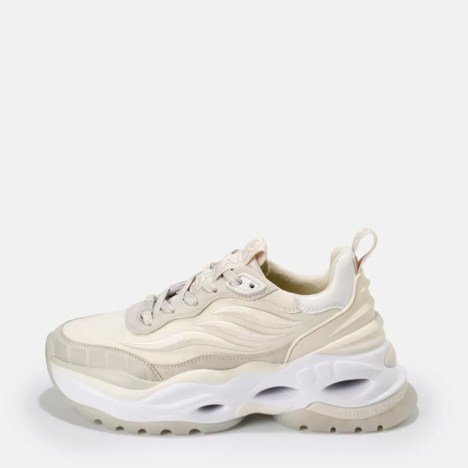 Les Baskets Triplet Third En Coloris Creme Associent Avec Brio Un Design Classique A Des Details Modernes. Les Superpositions Sur La Longueur De La Chaussure Et La Semelle Contrastante Au Design A Vague Conferent A Ce Modele Un Look Hyper Tendance. Ces Baskets Charment Tout Le Monde Grace A Leurs Caracteristiques Pratiques Comme Le Lacage Continu Et Le Tirant. Caracteristiques : Conception Vegane Mousse A Memoire De Forme Confortable Semelle Interieure Amovible Superpositions 3D En Forme De Vagues